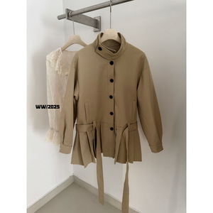 塞纳2025秋季新款风起伦敦 设计师款立领风衣裙外套