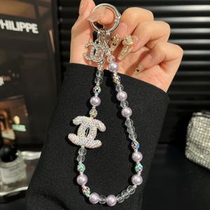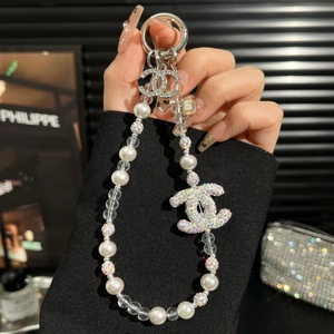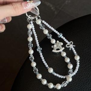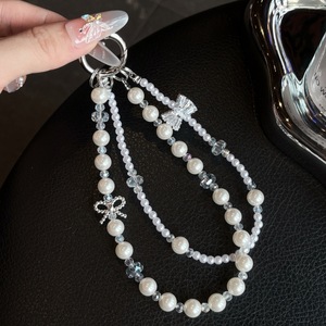 ins风水钻蝴蝶结手机链水晶 双链珍珠挂饰创意链条高级感车挂批发