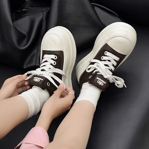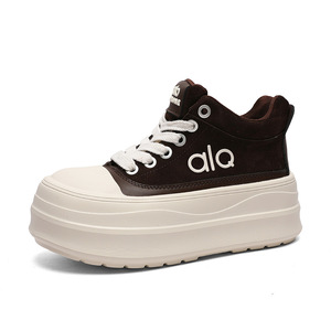 2025年秋季新款真皮厚底女鞋小个子增高圆头爆款休闲板鞋松糕底鞋