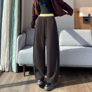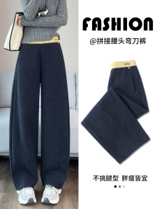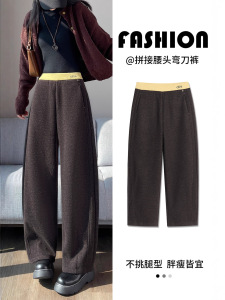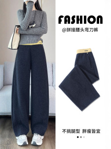兔毛呢腰头弯刀休闲裤女秋冬2025高腰梨形腿专供小个子直筒裤7248
