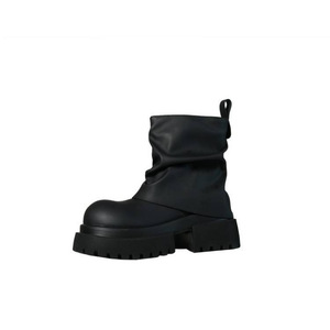 正当时髦季~韩版厚底粗跟褶皱裤管靴女堆堆靴2025秋冬增高ins短靴