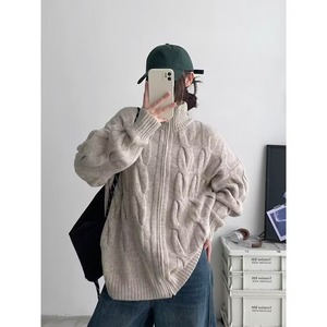 拉链立领开衫毛衣女款秋冬季美式慵懒风麻花设计感宽松针织衫外套
