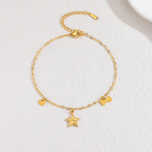 跨境爆款ins简约不锈钢手链小众设计爱心五角星羽毛吊坠手饰百搭
