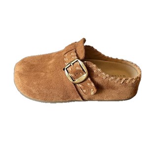 真皮厚底勃肯鞋内增高一脚蹬女鞋子新款秋冬包头半拖鞋女外穿单鞋