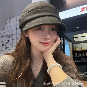 日系简约贝雷帽女秋冬韩版百搭显脸小八角帽文艺复古报童画家帽子
