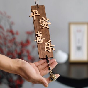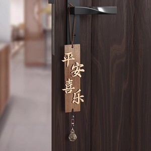 平安喜乐挂牌黑胡桃木入户门挂装饰乔迁大门把手茶室墙