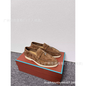 高版外贸LP乐福鞋真皮英伦平底豆豆鞋一脚蹬懒人软底大码休闲单鞋