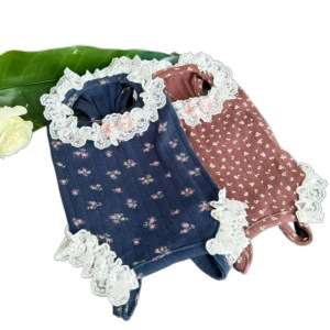 可爱萌宠秋冬背心护肚衣狗狗猫咪花边袖小型犬泰迪雪纳瑞犬四脚衣