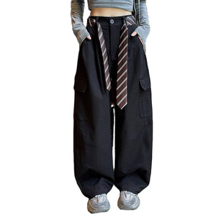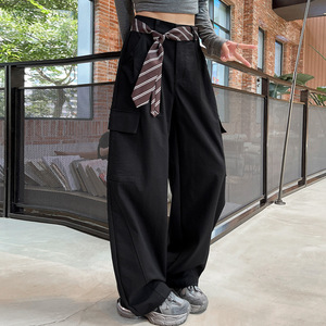 美式个性松弛感阔腿工装裤女2025秋季新款高腰显瘦休闲直筒长裤