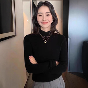 洋气纯色半高领修身内搭打底毛衣女装春秋2025新款正肩长袖针织衫