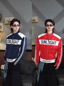 秋季新品男女同款美式复古潮流高级机车服潮牌ins立领夹克外套
