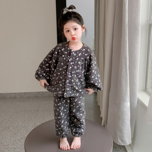 女童娃娃衫碎花冬款珊瑚绒睡衣套装儿童秋冬款法兰绒家居服两件套