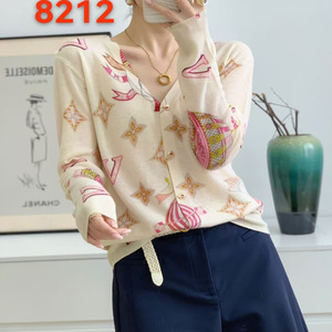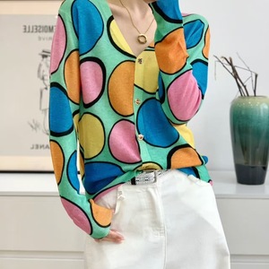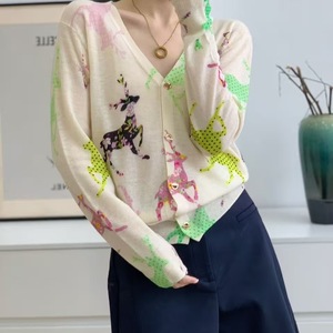 100%水溶羊毛针织衫女2025秋冬新款印花长袖羊毛衫开衫外搭毛衣女