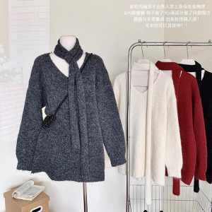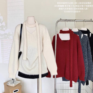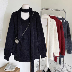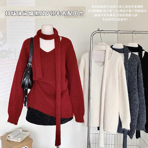 慵懒风v领挂脖套头毛衣女秋冬新款跨境氛围感软糯针织衫打底上衣