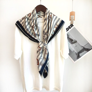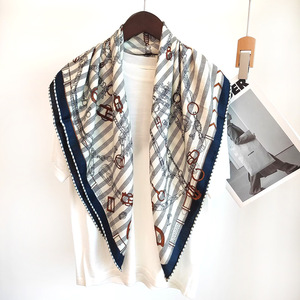 跃动的马轻奢百搭真丝羊毛方巾双面异色手工卷边时尚披肩丝毛围巾