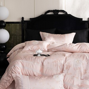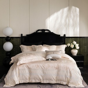 法式轻奢风180支提花澳棉长绒棉四件套纯棉蕾丝刺绣高级拼接被套