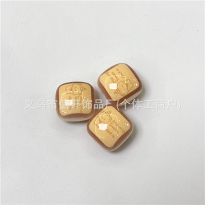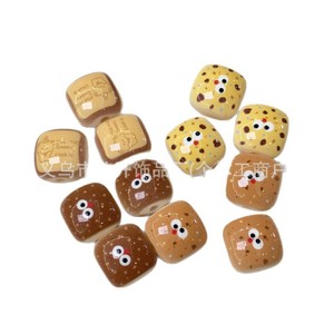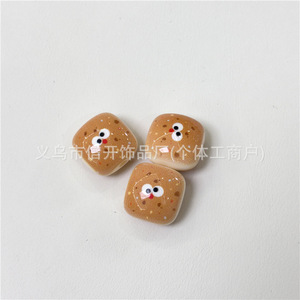 通孔卡通印花咖系小馒头串珠笔配件手机钥匙包链diy手工饰品材料