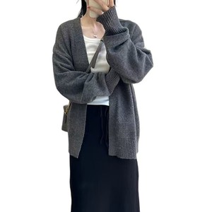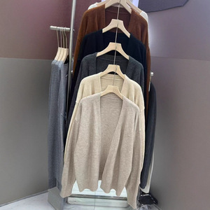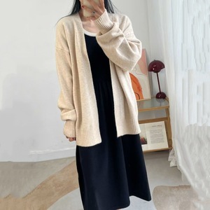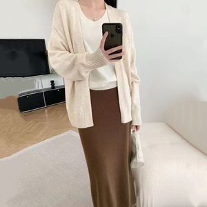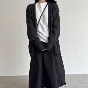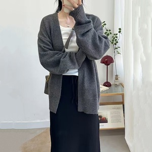 韩版v领中长款纯色针织开衫女秋冬温柔慵懒风毛衣外套百搭上衣潮
