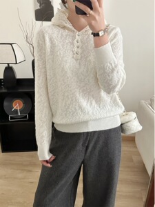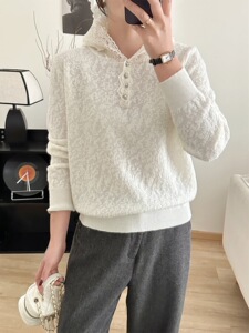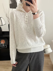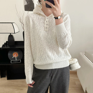 蕾丝花边连帽针织衫女2025新款韩系穿搭设计感薄款毛衣设计感上衣