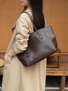 手提大容量真皮托特包女头层水晶植鞣牛皮新款松弛感通勤单肩女包