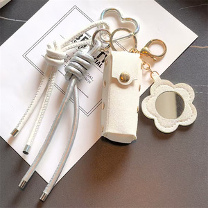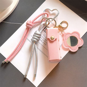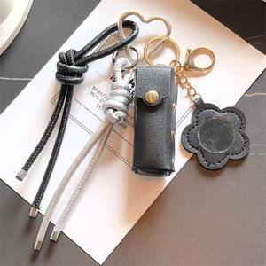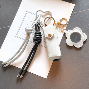 跨境miu系皮革口红镜子包包配饰钥匙扣挂件创意箱包配饰钥匙挂绳