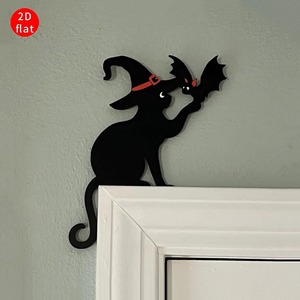 万圣节跨境热销亚马逊2D平面打印印刷黑猫蝙蝠门框装饰家居装饰品