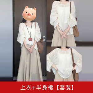 上衣+半身裙【套装】【2025超火秋季穿搭一整套小香风独特绝美漂亮韩系慵懒松弛感学院风小个子显高显瘦