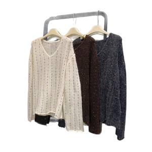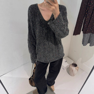 高级G混色彩纱洋气显瘦V领毛衣女秋冬季新款复古美拉德针织衫上衣