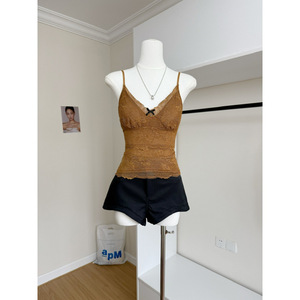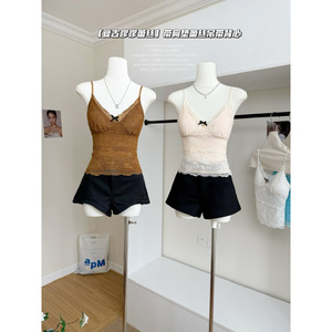 小众新款复古嗲嗲蕾丝带胸垫蕾丝吊带背心女内搭初秋纯欲修身美背