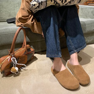 牛皮版~葡萄妈同款row风一脚蹬平底半包勃肯女鞋休闲包头博肯拖鞋