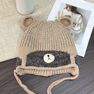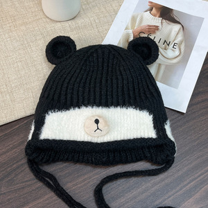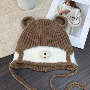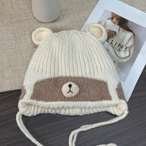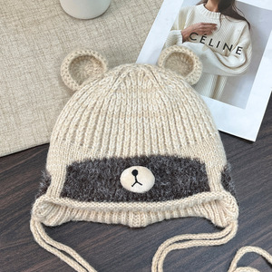 韩版小熊耳朵针织毛线帽子女秋冬加厚保暖护耳帽显脸小百搭套头帽