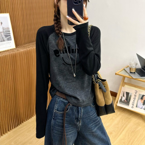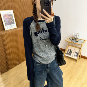 笑脸字母印花磨毛T恤女欧洲站2025秋装新款欧货女装洋气打底衫潮