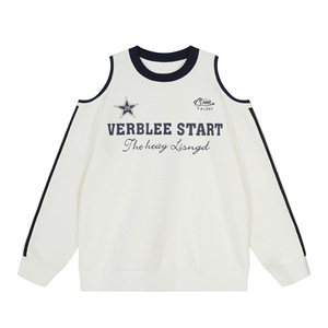 Fudge Pink 25秋季New美式复古个性撞色设计宽松露肩套头卫衣