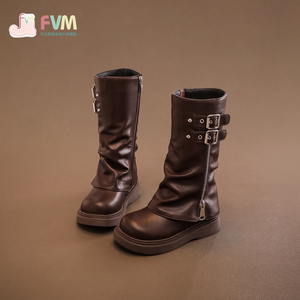 康蒂猫 女童靴子2025新款秋冬季儿童长筒长靴小公主高筒裤管皮靴