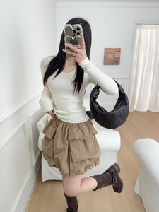 ARK花苞短裙半身裙深米色25秋季新款卡其休闲短裙百搭 1307611001