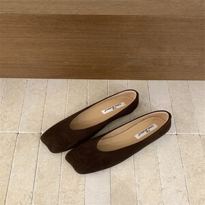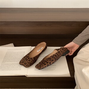 法式芒果头美拉德韩版2025浅口方头新款平底单鞋软底脚蹬奶奶瓢鞋