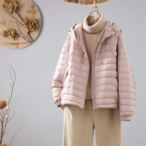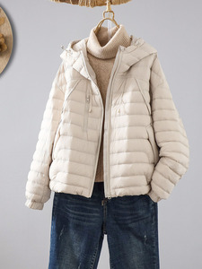连帽轻薄90白鸭绒羽绒服女短款2025冬季新款复古保暖绗线休闲上衣