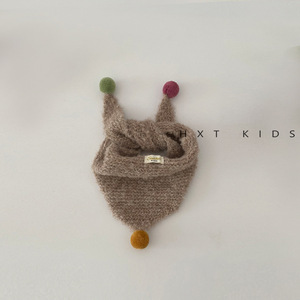 儿童洋气三角巾秋冬撞色小球小标围巾男童女童宝宝冬天保暖围脖潮