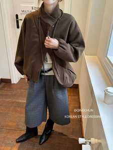 韩系时尚简约立领短款外套女2025秋季新款休闲百搭夹克上衣配包包