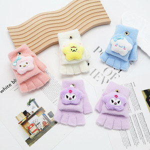 儿童可爱手套可爱翻盖女孩卡通半指套女童冬季保暖防风宝宝五指套