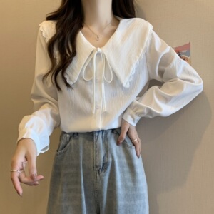 大码法式娃娃领衬衫女春秋季高级感气质减龄白色衬衣长袖上衣胖mm