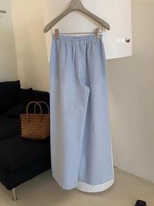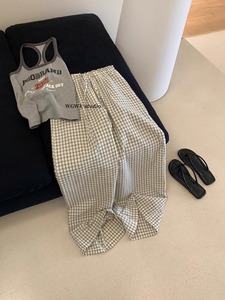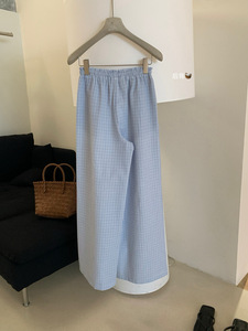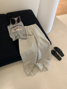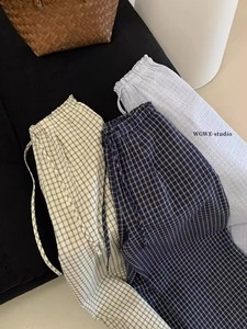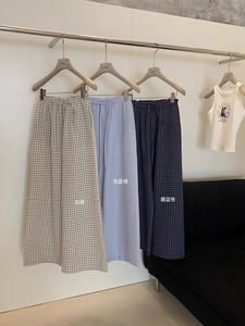 早秋季韩版格子宽松阔腿裤小众女士褶皱显瘦慵懒风松紧腰休闲长裤
