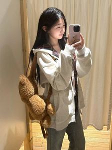 美式复古格子连帽卫衣女春秋oversize薄款外套宽松慵懒风开衫上衣
