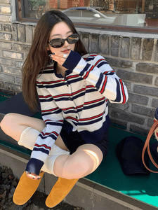 韩系撞色条纹长袖针织开衫女2025秋季新款慵懒感休闲百搭宽松毛衣