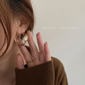 交叉麻花冷淡风耳钉复古金属圆圈圈高级感耳环女韩国气质耳圈耳饰