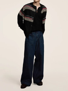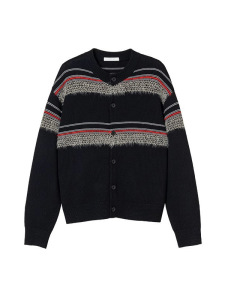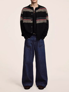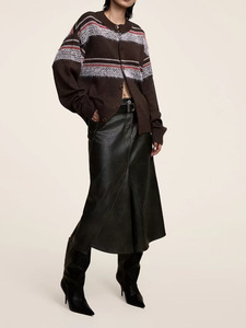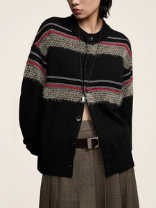 仿貂毛条纹复古学院风圆领宽松毛织针织开衫女