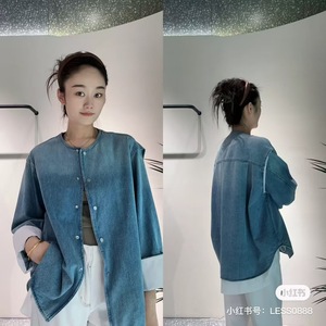 渐变色牛仔夹克女拼接衬衫式假两件宽松外套女2025秋季