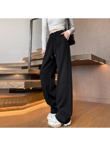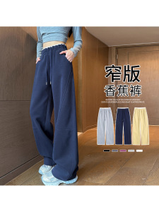 藏青色弯刀阔腿裤女春秋2025新款高腰休闲直筒卫裤美式香蕉运动裤