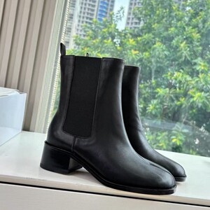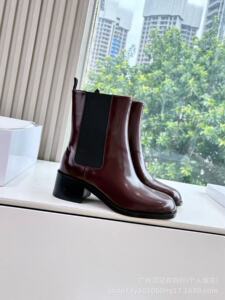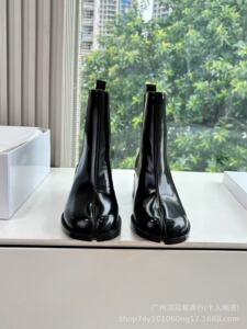 tabi分趾靴女高版2025秋新款复古牛皮短筒粗跟裸靴时装切尔西短靴