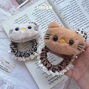 秋冬复古毛绒kitty猫豹纹掰掰夹刘海侧边夹美拉德风扎发头绳卡通
